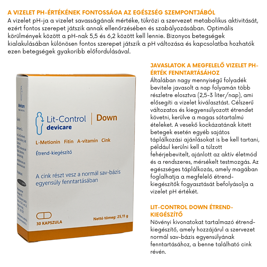 A Lit-Control Down növényi kivonatokat tartalmazó étrend-kiegészítő, amely hozzájárul a szervezet normál sav-bázis egyensúlyának fenntartásához, a benne található cink révén.